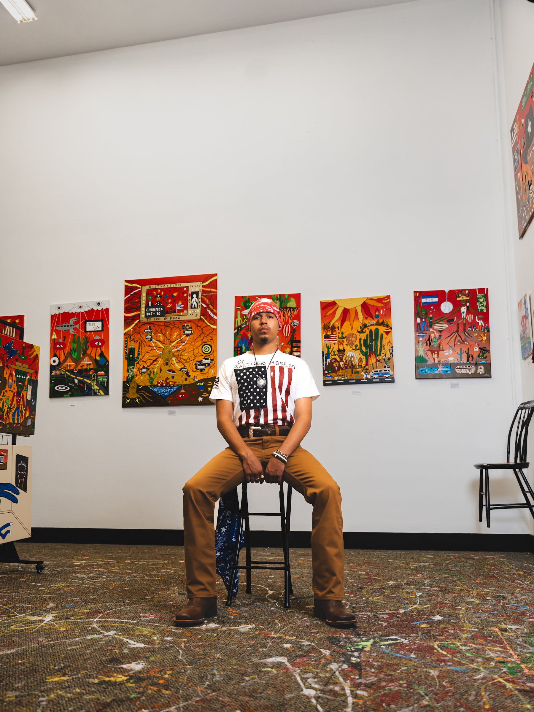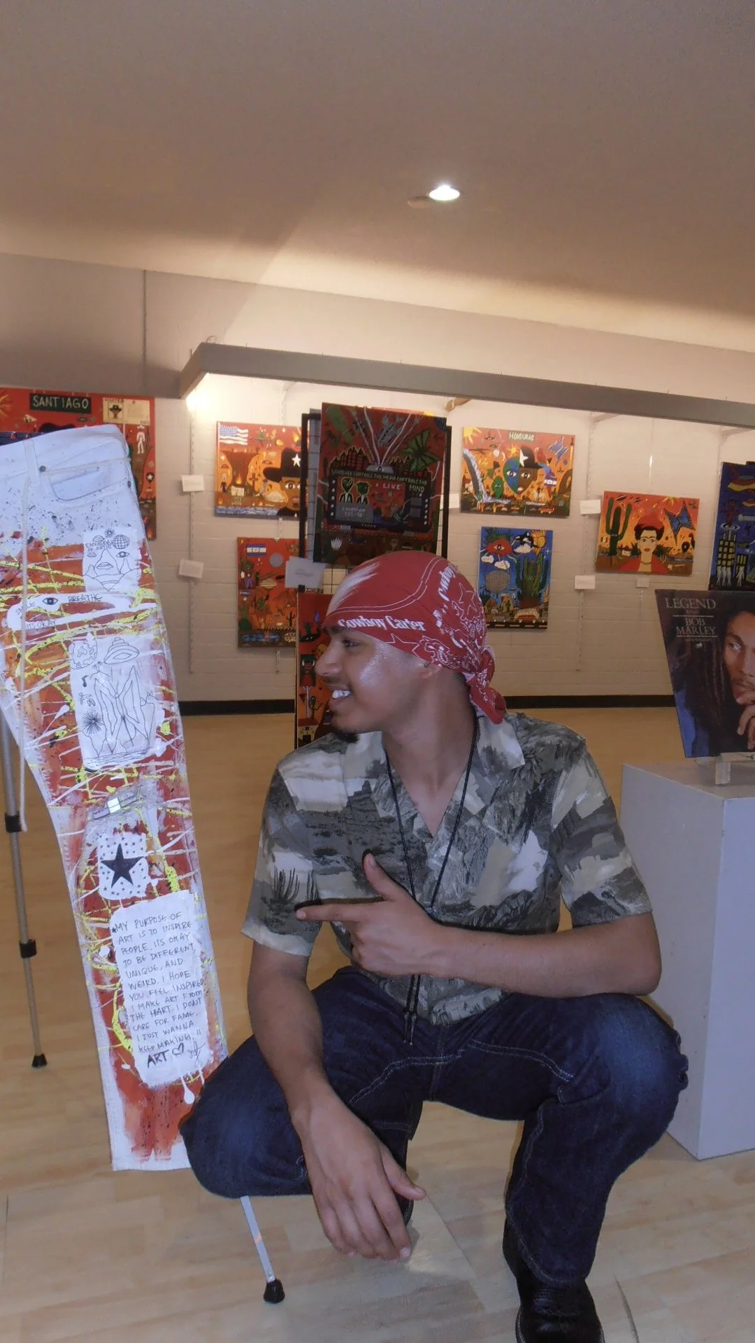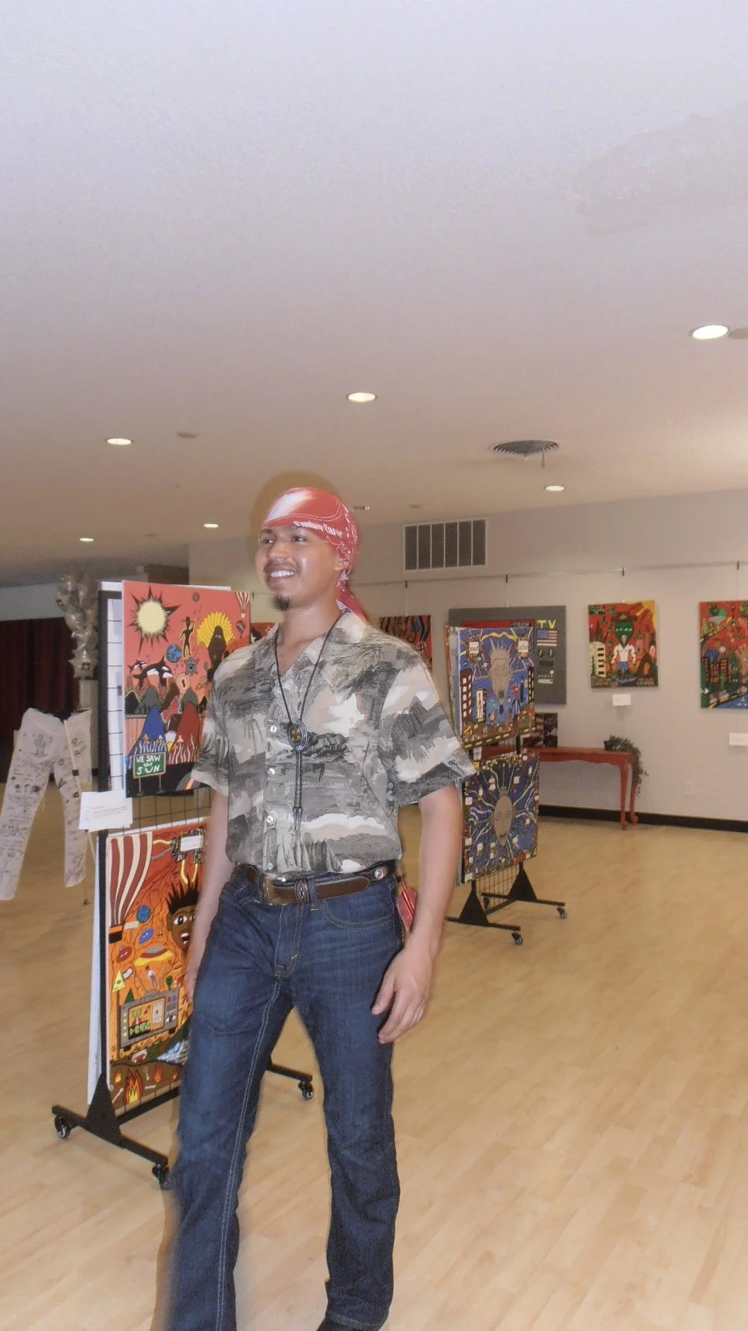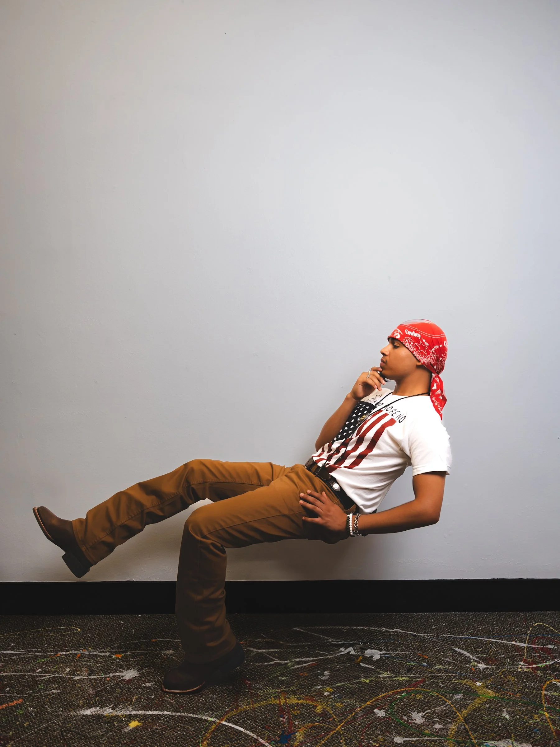 I hit ’em with art every time. Creating isn’t soft or quiet it’s powerful, direct, and meant to leave impact. My brush is the trigger, my colors are the bullets, and every piece I release hits straight to the heart. Art is how I fight, how I speak, how I live.”Me wearing this red bandana is more than just style—it’s my armor. It makes me feel powerful, like I’m stepping into another level of myself. The bold red over my head represents a BANG that same explosive energy I put into my art. It’s not just fabric, it’s my symbol of strength, street fashion, and the force of creativity I carry with me.