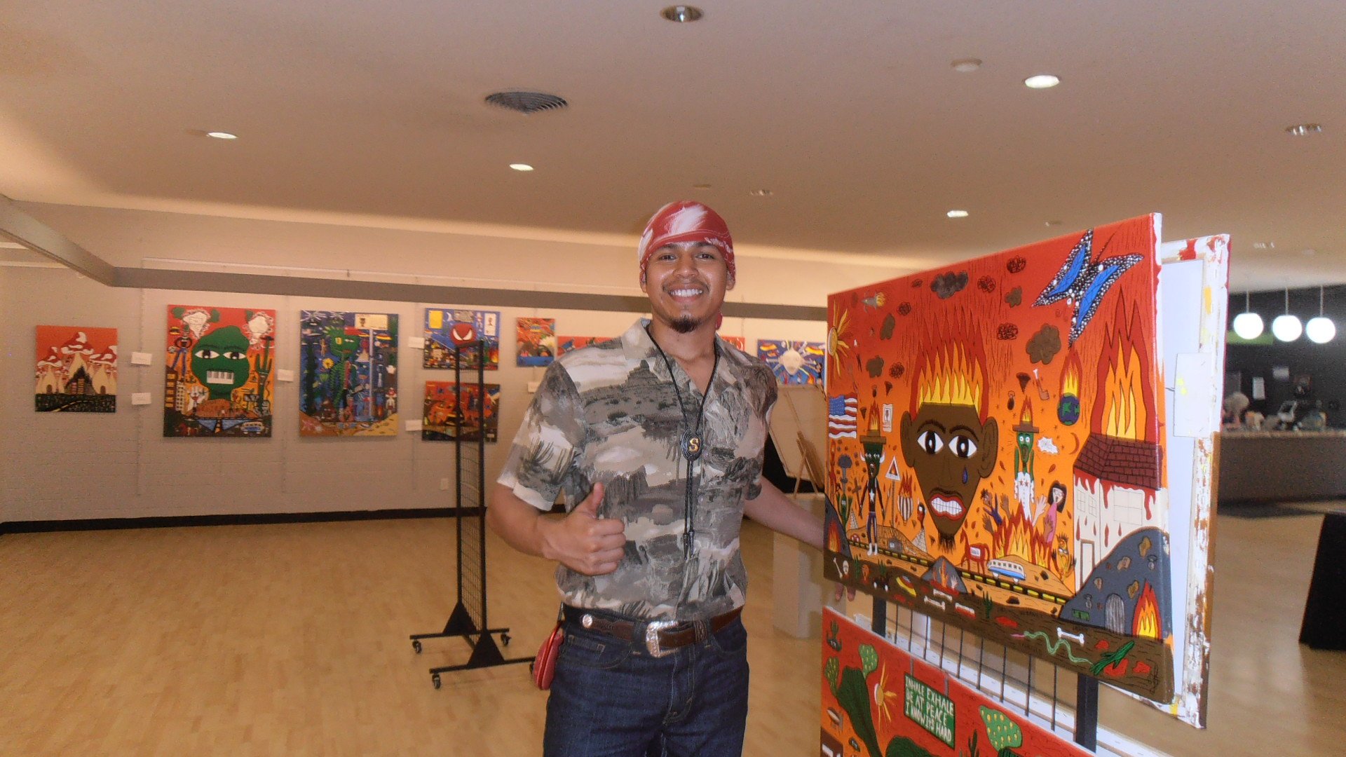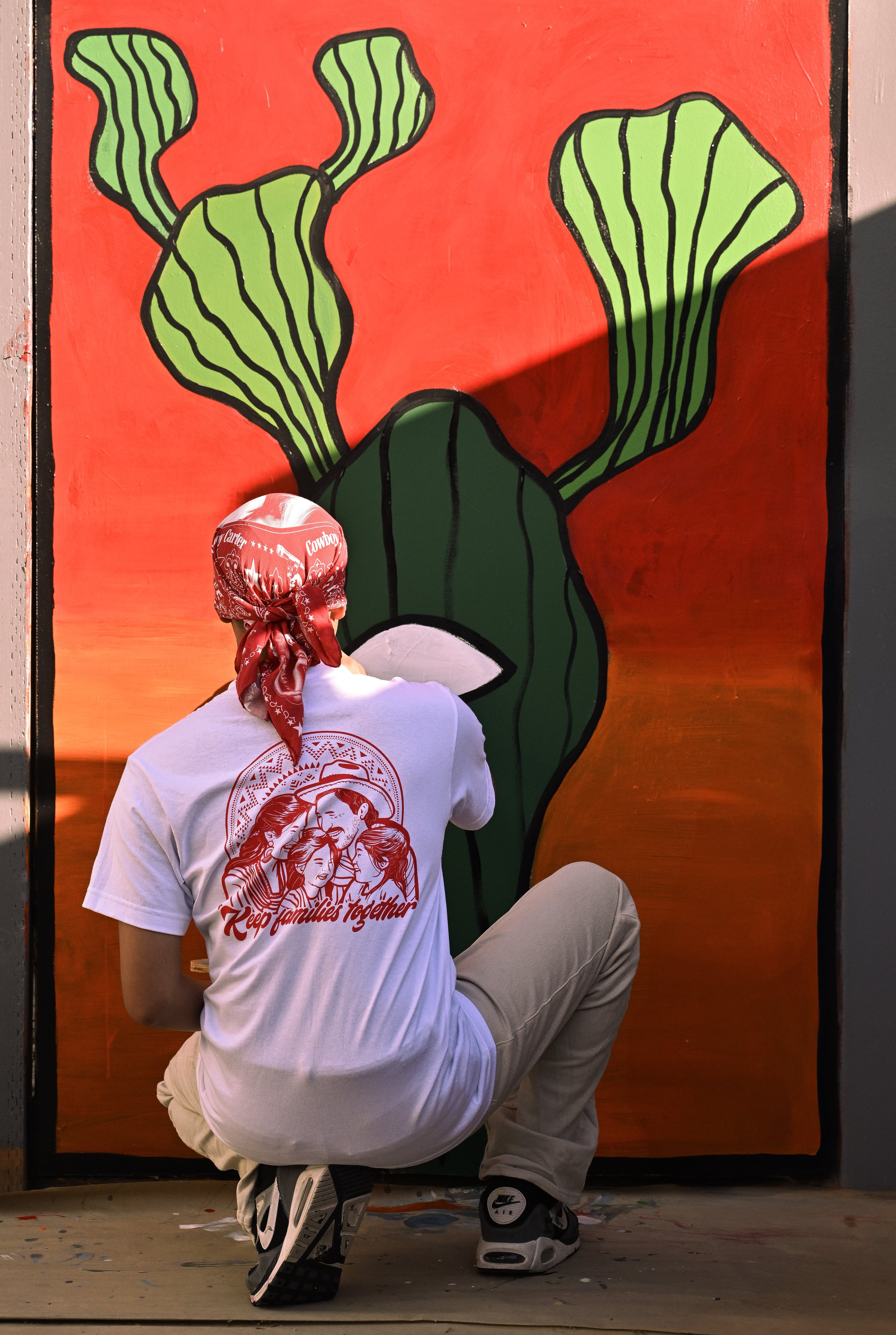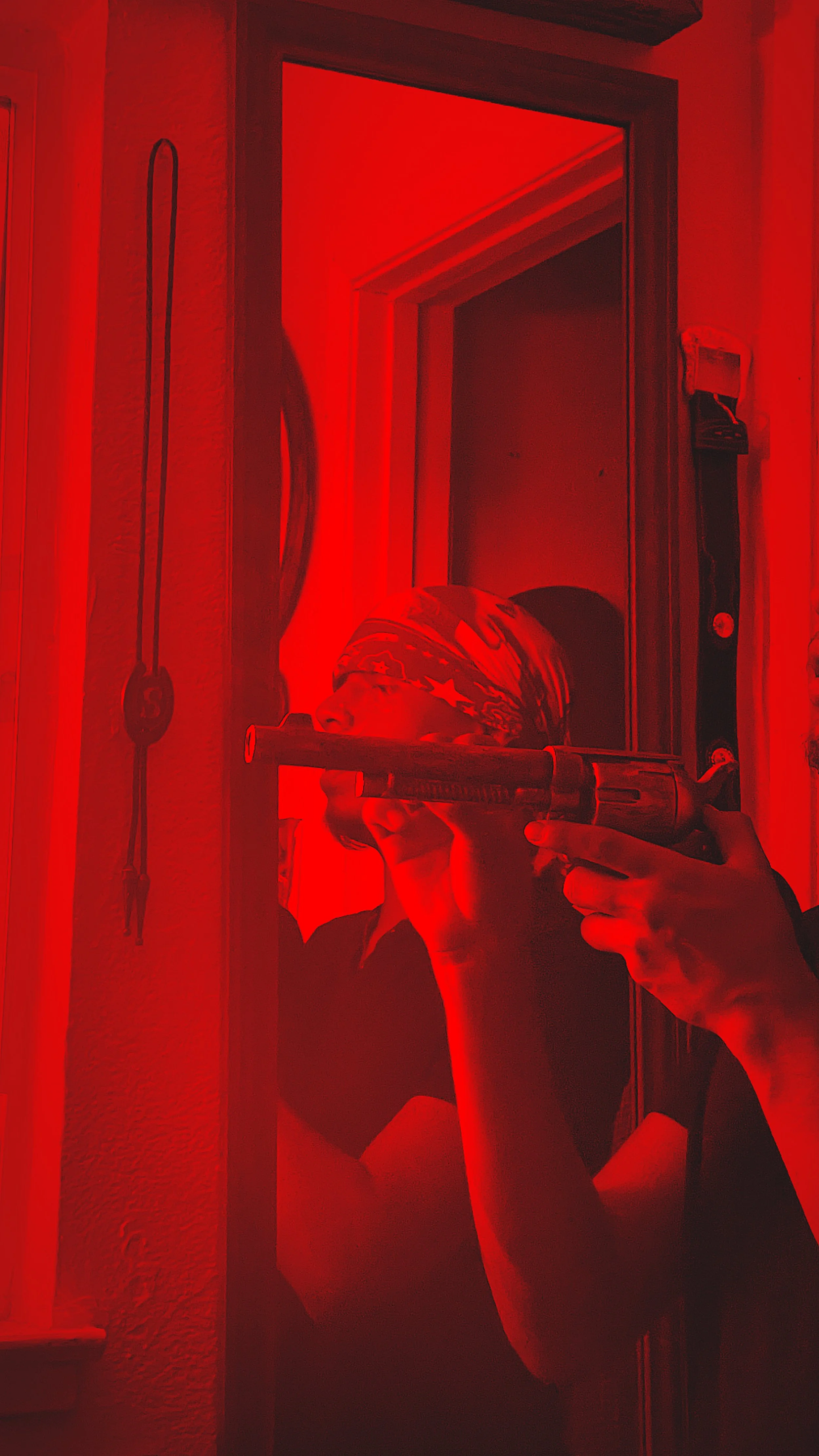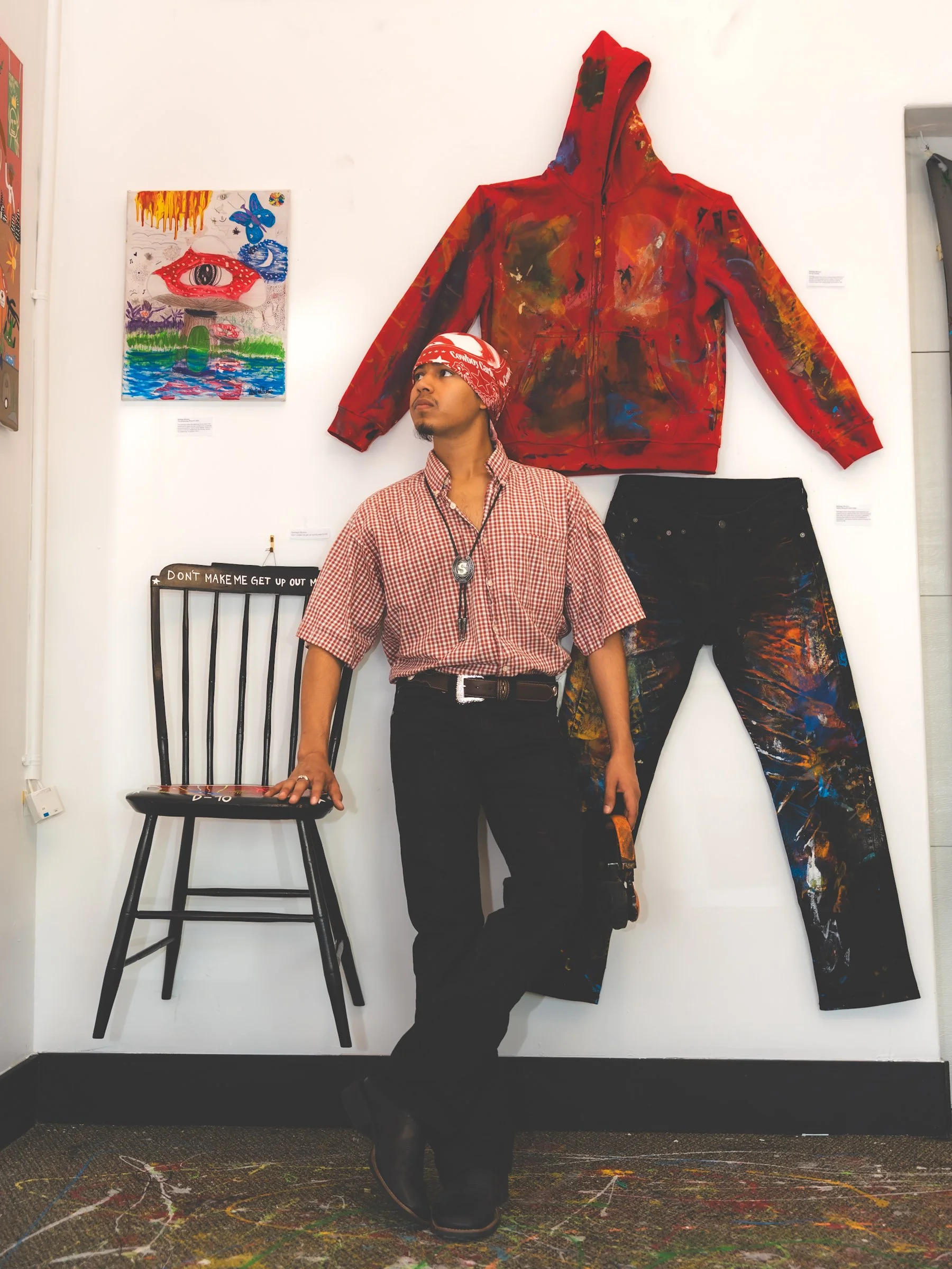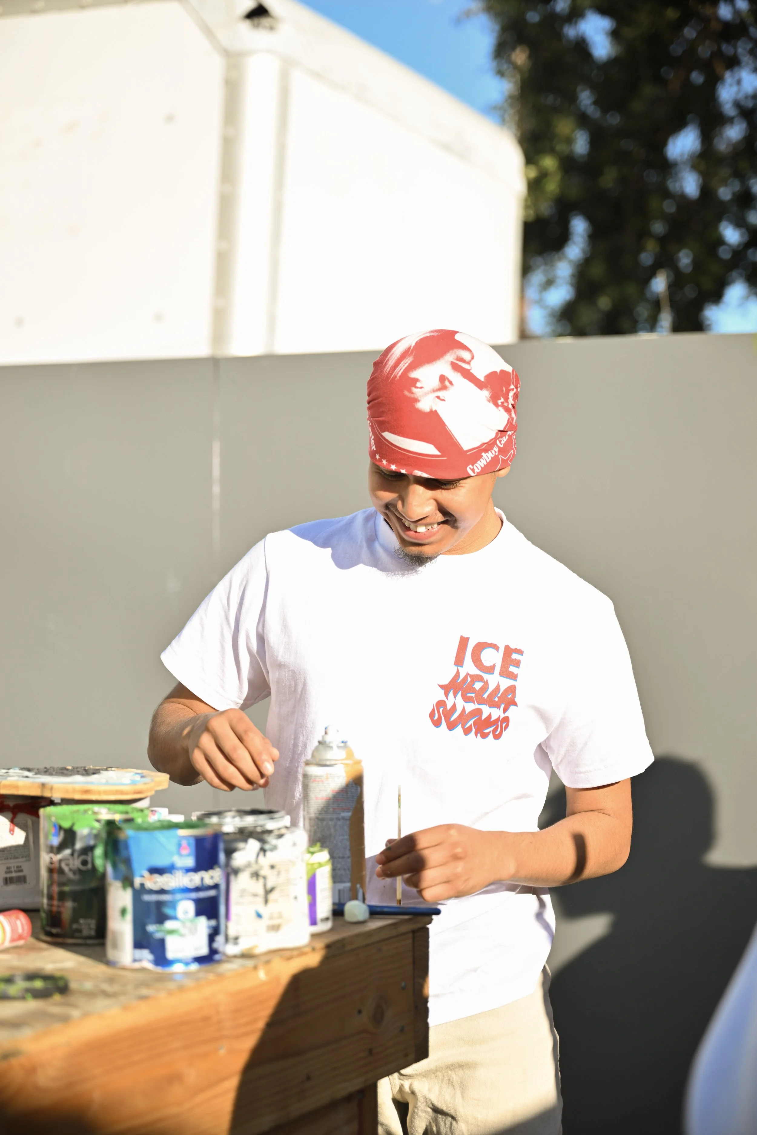 I hit ’em with art every time. Creating isn’t soft or quiet it’s powerful, direct, and meant to leave impact. My brush is the trigger, my colors are the bullets, and every piece I release hits straight to the heart. Art is how I fight, how I speak, how I live.”Me wearing this red bandana is more than just style—it’s my armor. It makes me feel powerful, like I’m stepping into another level of myself. The bold red over my head represents a BANG that same explosive energy I put into my art. It’s not just fabric, it’s my symbol of strength, street fashion, and the force of creativity I carry with me.