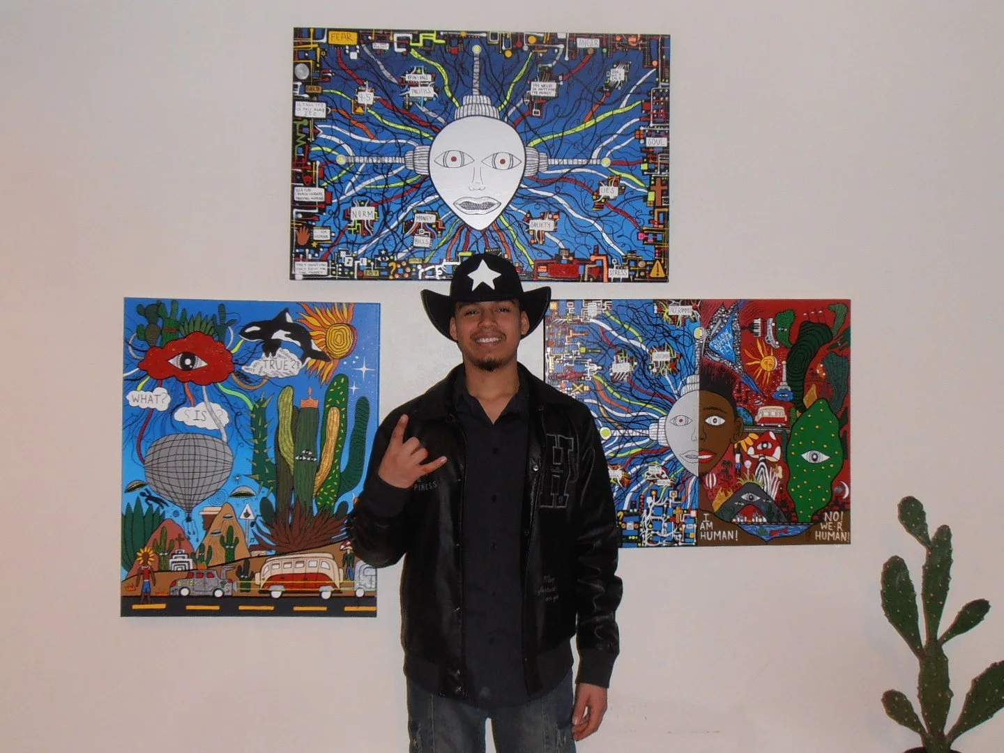 Shine through it all” means no matter what life throws my way pain, doubt, setbacks I choose to let my light shine. It’s a reminder that even in my darkest moments, I carry something within me that can’t be dimmed. My art is proof of that. I shine through the chaos, through the healing, through the unknown and in that shine, I find my purpose. -Santiago Moreno