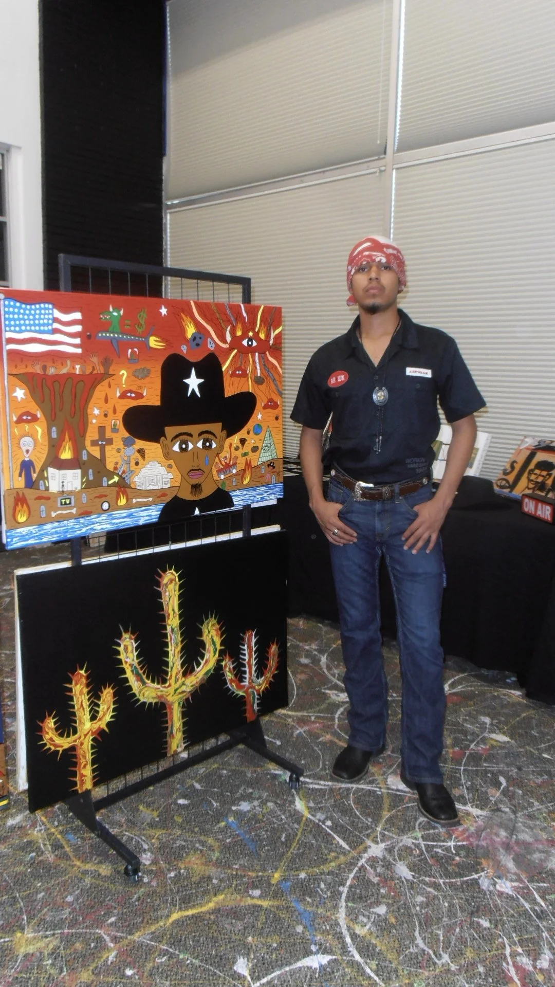“Shine Through It All” Santiago now brings that vision to CMAP Exhibit Part 2, presenting a body of work that reflects resilience, growth, and belief in possibility. Every piece tells a story of Santiago’s own journey of shining through life’s challenges, while also extending an invitation for others to find their own light. This exhibit isn’t just a continuation it’s a declaration. Santiago shares his truth and his hope for others, proving that with enough heart, anything is possible.